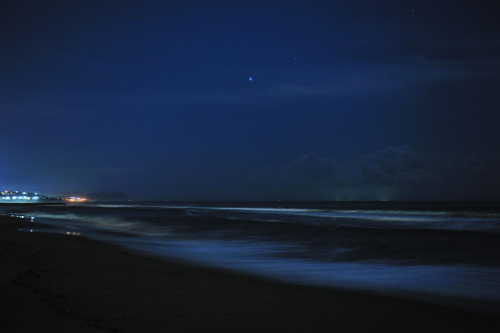 窓の外は月も星も出ていたので秋穂の美濃ヶ浜に向かいました。